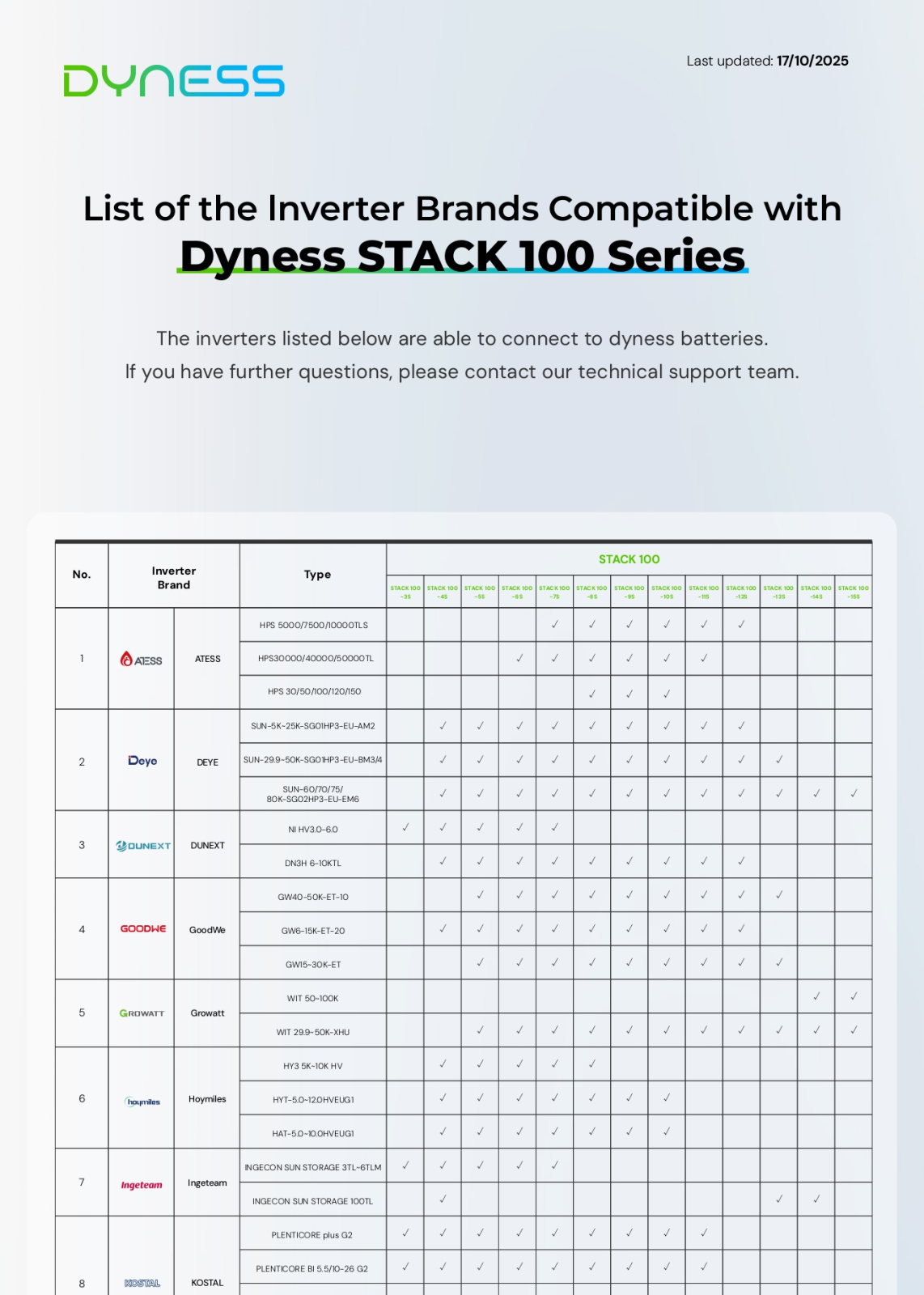 Va rugam sa verificati lista de compatibilitate a invertoarelor pe care o puteti descarca din sectiunea de Download de mai jos.