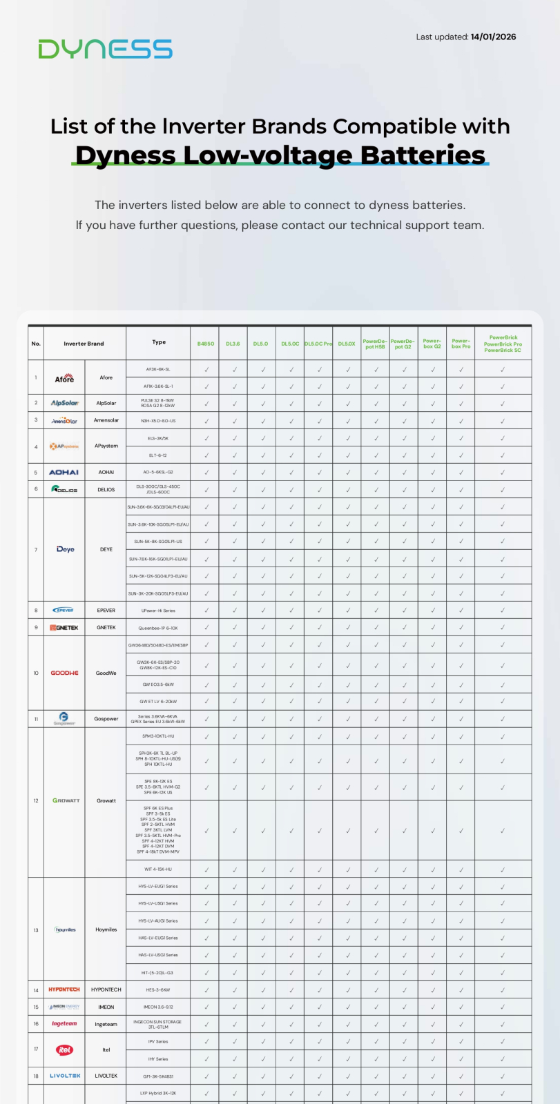 Bateria solara cu litiu Dyness Powerbox G2 51.2V este compatibila cu: