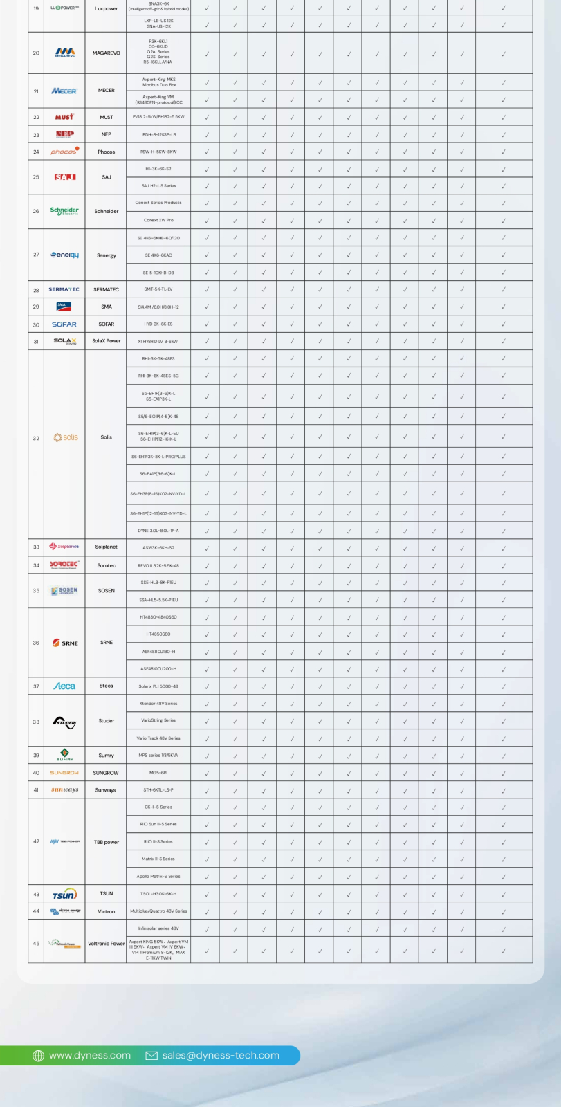 Bateria solara cu litiu Dyness PowerBrick 51.2V este compatibila cu: