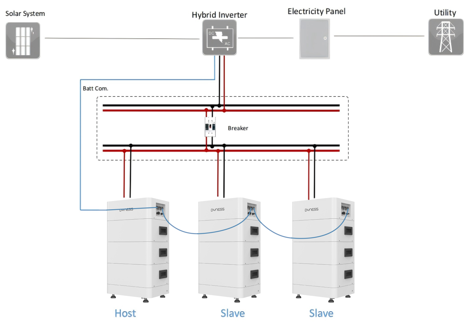 Modulul de control Dyness T9637S poate gestiona intre 2 si 6 module de baterii HV9637S, in functie de compatibilitatea invertorului.