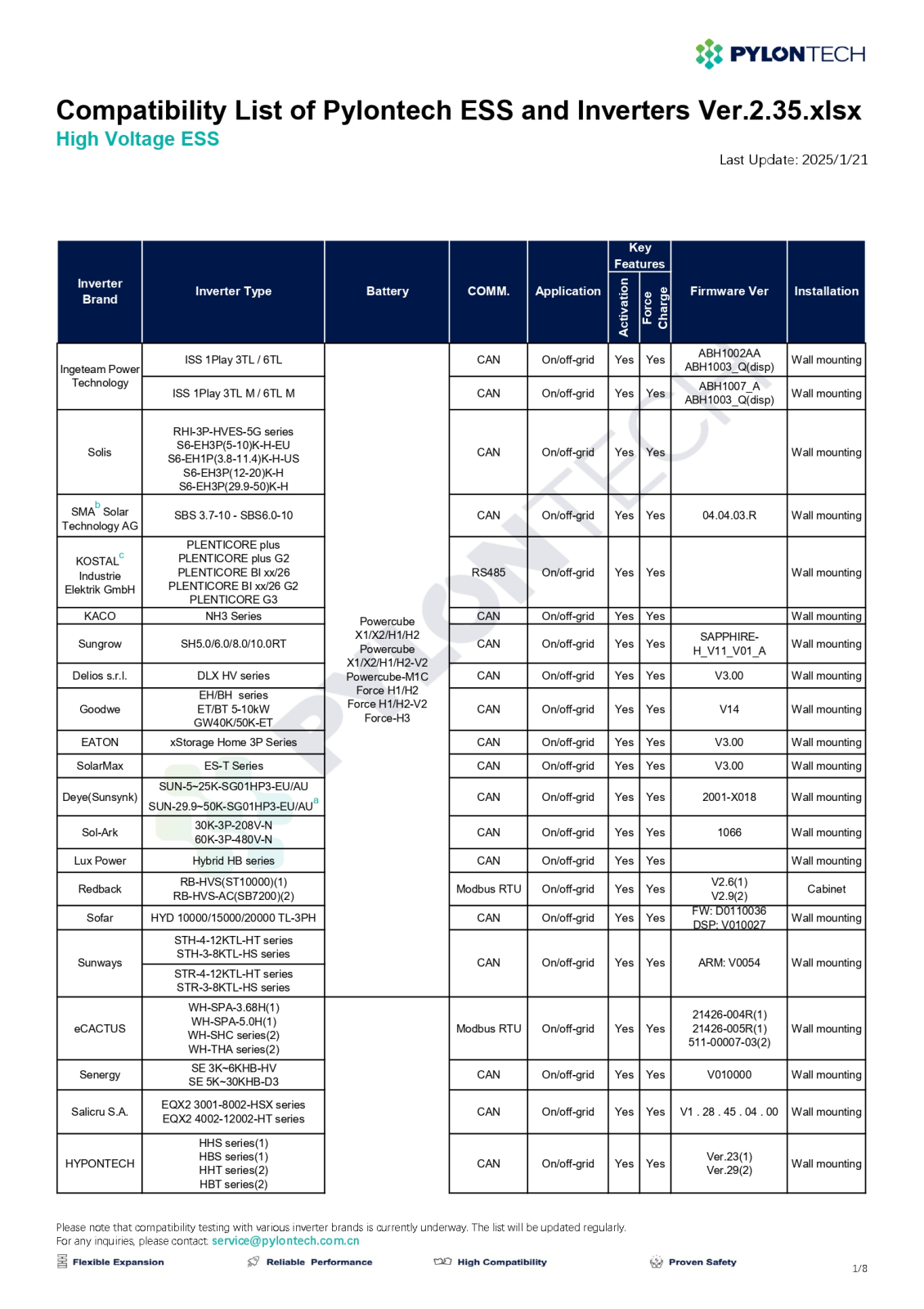 • Lista invertoarelor compatibile Pylontech Force H2