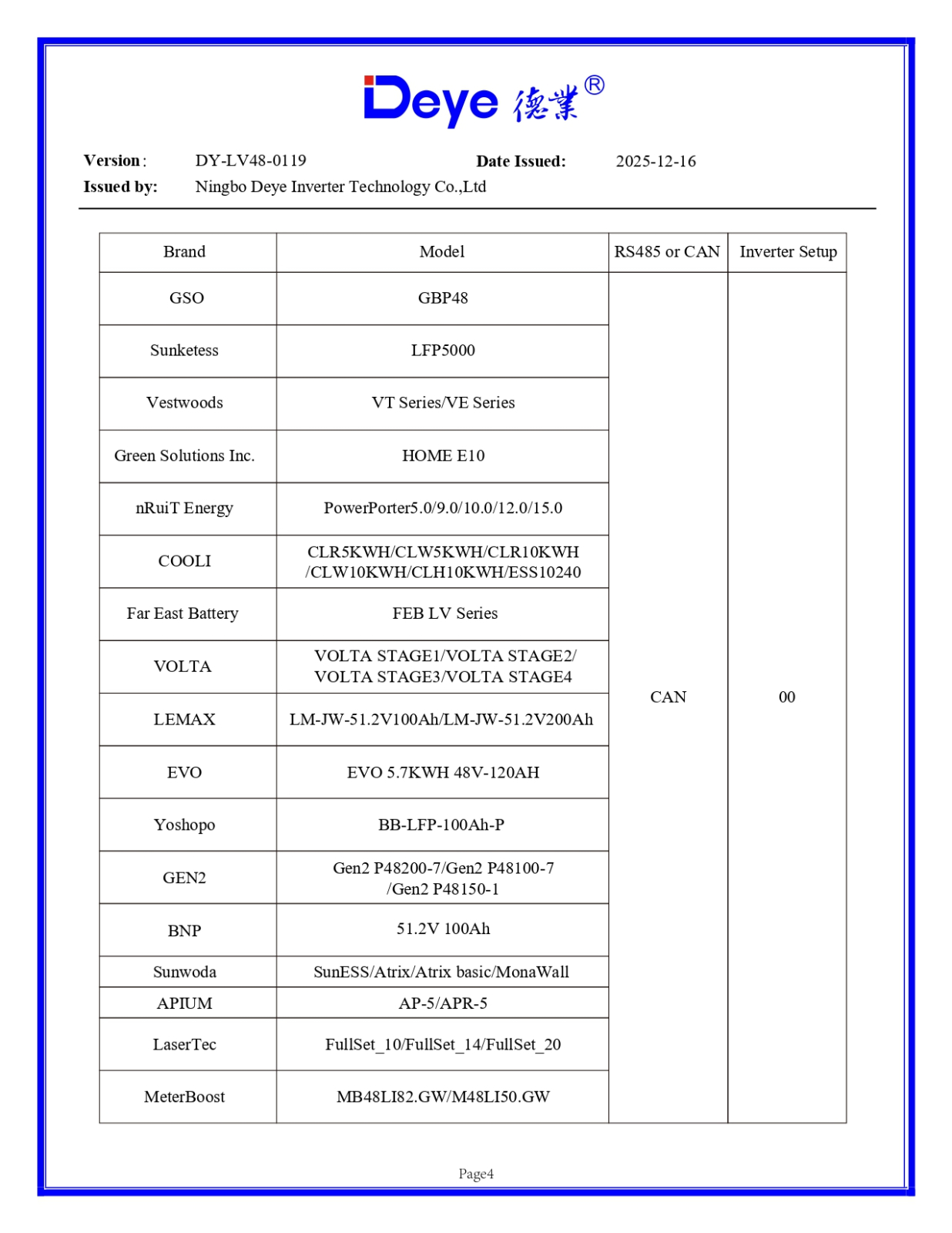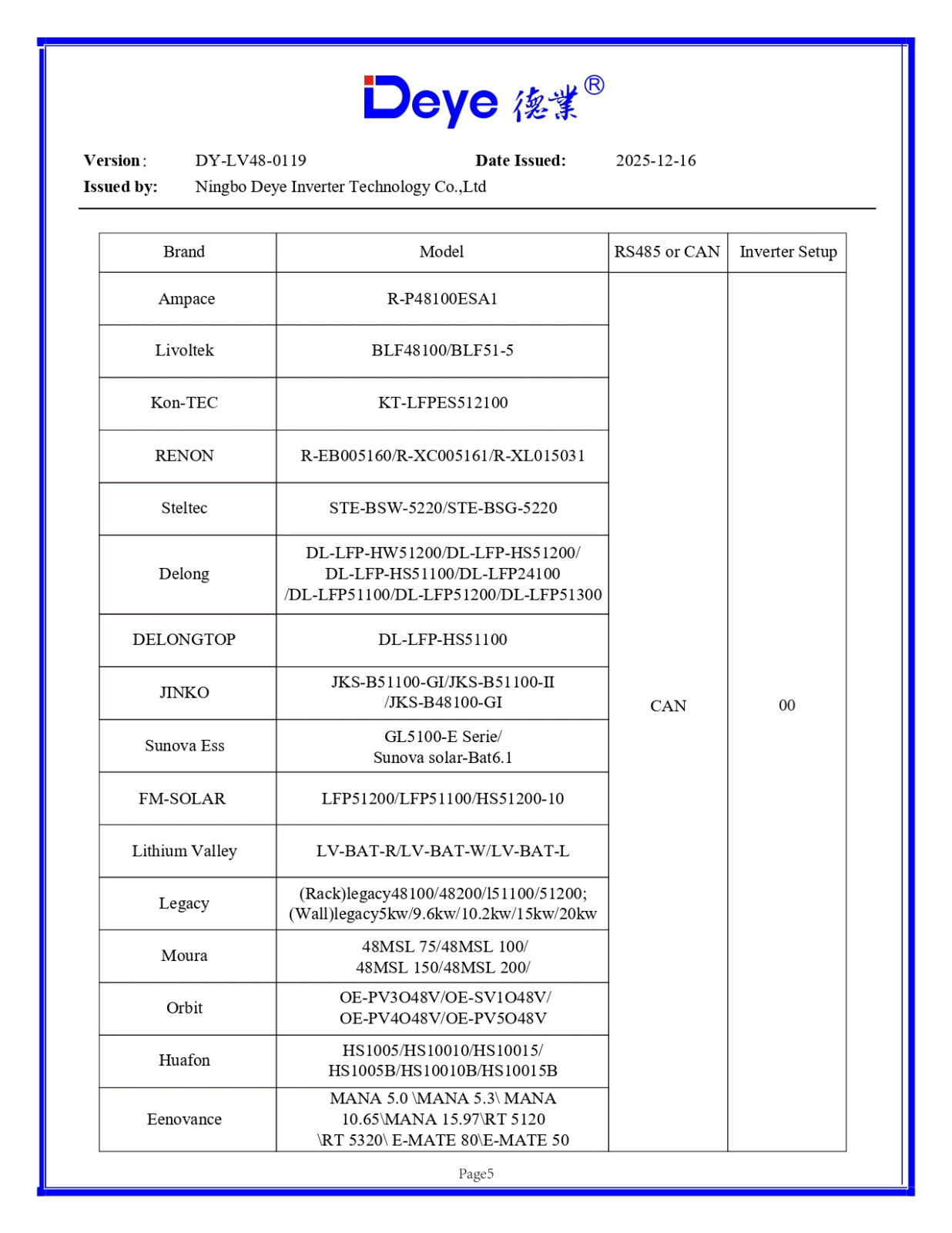 DescarcaLista bateriilor compatibile cu invertoarele DEYE LV