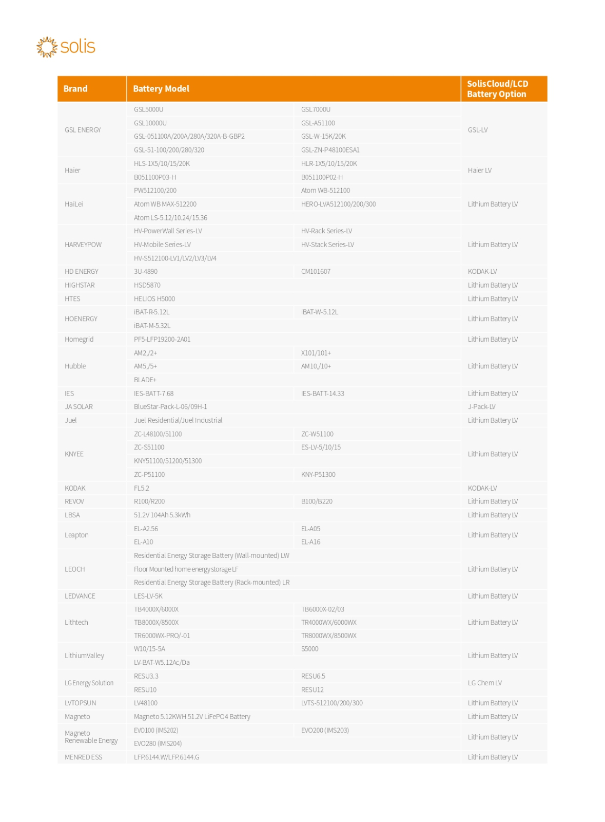 DescarcaLista bateriilor compatibile cu invertoarele Solis LV